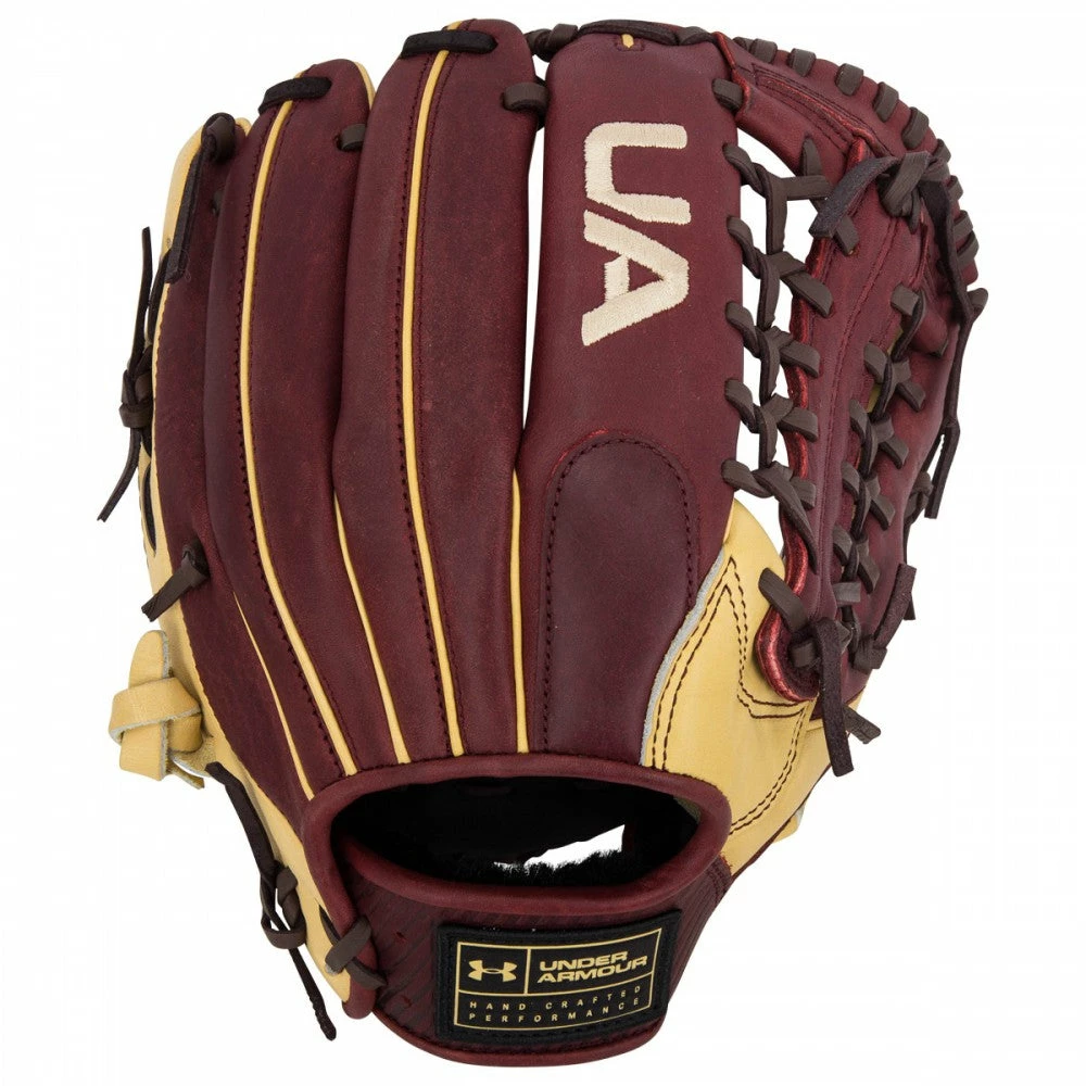 A glove starts with the leather that is used to construct it. Only the best, most durable leathers satisfy players of elite talent. Under Armour aims to create a solution that helps these players improve their game. The Japanese tanned steer hide shell of this glove provides exceptional strength and a lightweight feel. This is great for middle infielders because they can improve the quickness of their hands and in turn make every close play an out. The premium cowhide palm and finger linings allow for a quicker break in. This means you can have your individualized product in your hands for game time faster than other op gloves on the market. The premium grade U.S. tanned lacing and rolled leather welting give your glove a long-lasting shape. Retaining the shape of a glove is extremely important because the quality of the glove greatly diminishes when it starts to become floppy. There are three color variations of this glove with the modified trapeze web. The black and cream color gives players a sleek design. The navy and cream variation and black cherry and cream variation gives players the ability to have a glove that has their favorite color or meets their teams’ colors. Come get yours today!