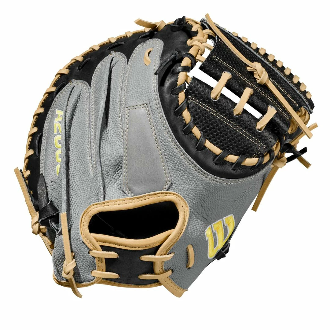 This Wilson Catchers Mitt looks sharp with the black and grey combination highlighted with cream colored lacing. This model also has a superskin back which makes the glove significantly lighter and easier to control.  Wilson is famous for their A2000 series and this Wilson catchers mitt is sure to stand out this season. For close to a hundred years now, Wilson has been sitting at the top and providing players at all levels with gear to succeed. Become the next great catching prospect with the Wilson A2000 M1D Spin Control 33.5 inch catchers mitt. Order this Wilson catchers mitt today from Baseball Bargains! Model: WBW100116335