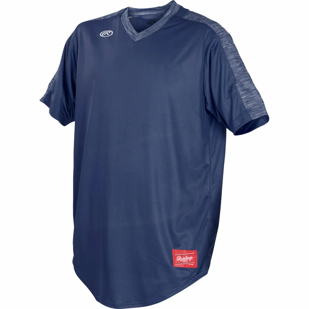 The Rawlings LNCHJ Launch Jersey is one of the best jerseys that Rawlings offers. To start with some of their basics, it uses a v-neck collar style. The v-neck will cut down on neck irritation as it doesn t sit too tightly on your neck. Nothing is worse than your skin getting irritated mid game from your collar and sweat. Also, there are no buttons on this jersey, it is a pullover. This uses less material and in the summer it is nicer to use as pullover. So, with the less material, you won t be as hot, which is ideal.