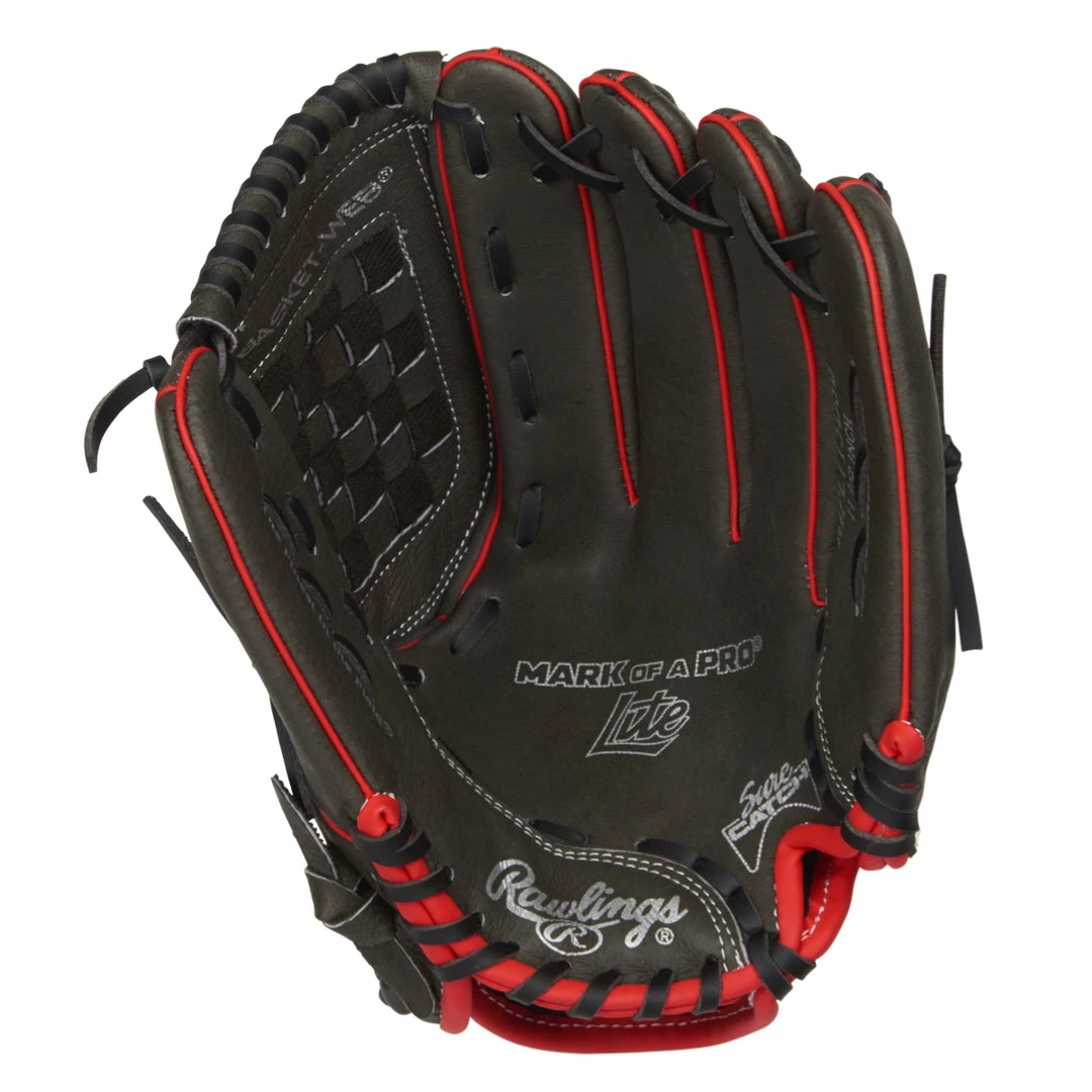 Rawlings Mark of a Pro Light Series Gloves have an innovative mesh back construction, which allows for the removal of the extra weight that a glove possesses. This is necessary for younger athletes and this will give them extra flexibility as well as a swifter hand motion. The Rawlings Mark of a Pro Light MPL115DSB 11.5 in Youth Baseball Glove has palm and index finger padding, that provides an extra coating of protection for young playerÃëÃ__’ÇÃëÃ_s hands. This mitt also obtains a full leather palm design, which assists in the pockets shape retention. Athletes performing with this glove will surely benefit from a custom fit Velcro strap, providing a snug fit.
