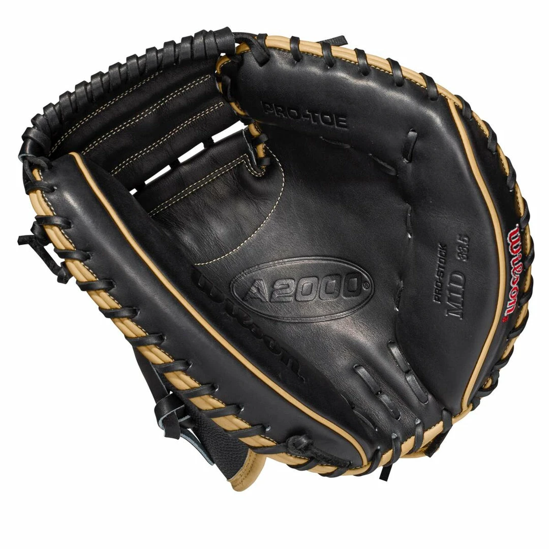These Wilson A2000 catchers mitts not only perform well, they also look great. The mitt comes built out of black leather and has some blond and red accents that really pop. For years now, Wilson A2000 continues to be one of the most recognized lines in the game of baseball. When you take the field, no matter what your position, from outfield to catcher, Wilson has got you cover. The Wilson A2000 M1DSS 33.5 inch catchers mitt will have you prepared for anything behind the plate. So, order this catcher s mitt today from Baseball Bargains! Model: WBW100114335